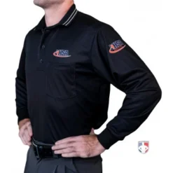 - Long-sleeved umpire shirt with three-button placket and a split tail design