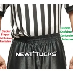 Ever had to struggle with keeping your umpire or referee uniform tucked? This product is designed to keep you looking professional while you carry out your job. It doesn’t matter how much movement you have to make on the field or court, Neat Tucks Active is just what you need to keep your uniform in place. No more worrying about your look and no more awkward moments when the camera zooms in on you adjusting your shirt! This awesome look is achieved by attaching Neat Tucks clips to shirt tail and then fastening the buckles around the leg.