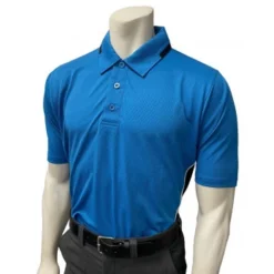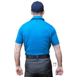 Smitty brings high-performance 4-way stretch Body Flex fabric to this new short sleeve shirt for NCAA and college softball umpires. This shirt boasts a bright blue base color with a white trimmed, midnight navy vented side panel and midnight navy collar trim.