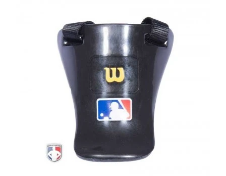 Finally! A Wilson throat guard with gold “W” to match your Wilson mask or chest protector’s gold “W” logo. Exclusively at Ump-Attire.com, it also has all-color MLB logo.